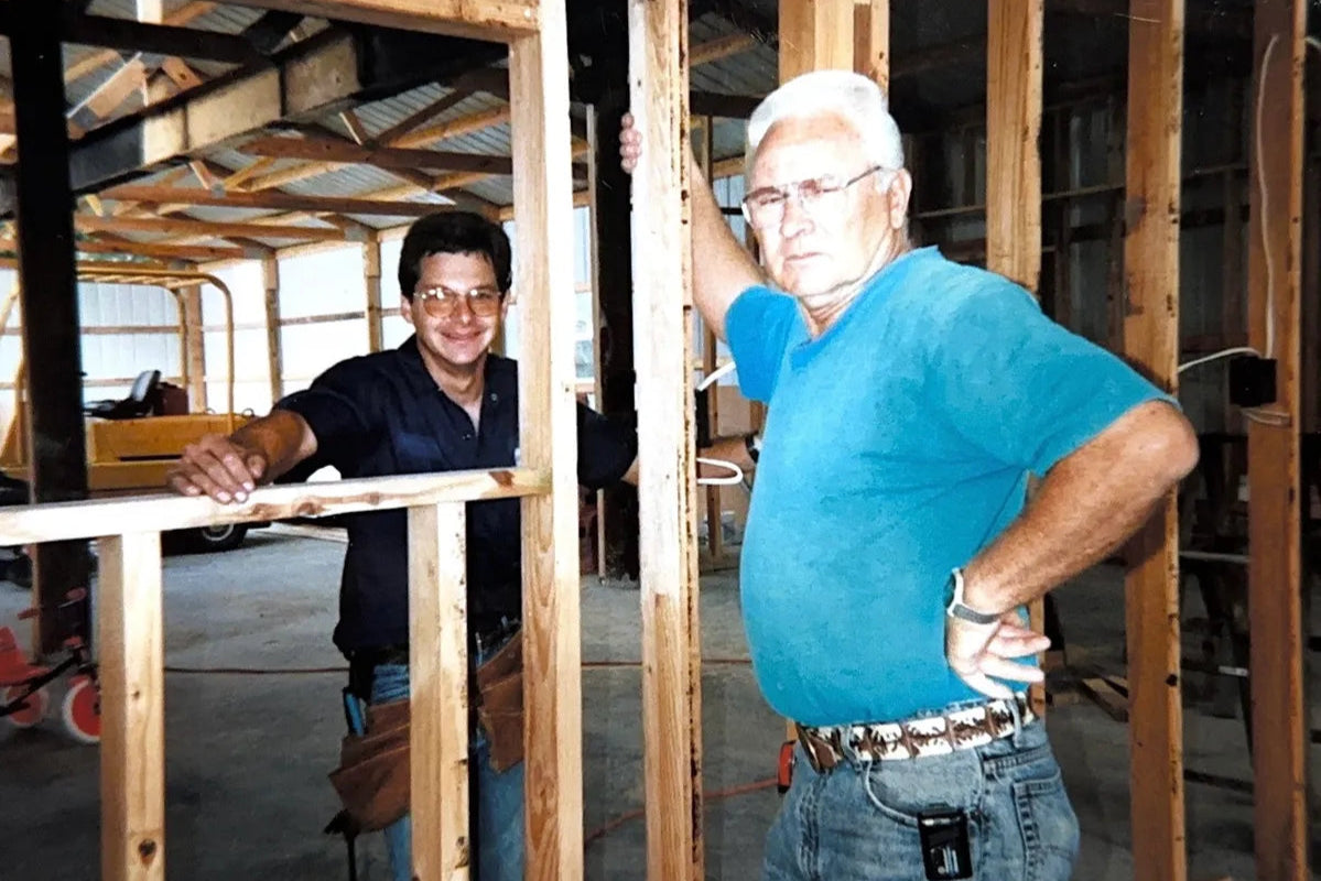In 1996, Mat Francois had a dream to open his own welding repair company. Making this dream a reality, Mat and his father (pictured here during the initial building process) started the build of a brand new shop on land right behind his home. With a little time and a lot of hard work, they were finally able to open Francois Custom Repairs. The company remained open for 4 years, and then a great offer with a much larger company came to the table, and Francois Custom Repairs closed. For the last 27 years the building has remained in the family's name just waiting for its next adventure. Here we are, a full circle moment back to the old grey shop. At the end of 2022, Ryan, Briley, and Mat decided that they would open the old shop back up as a repair shop. Renovations began in February 2023 to make the shop more efficient, and on April 3, 2023, the shop doors opened to the public again for the first time in 27 years as WeldCo Repairs.
