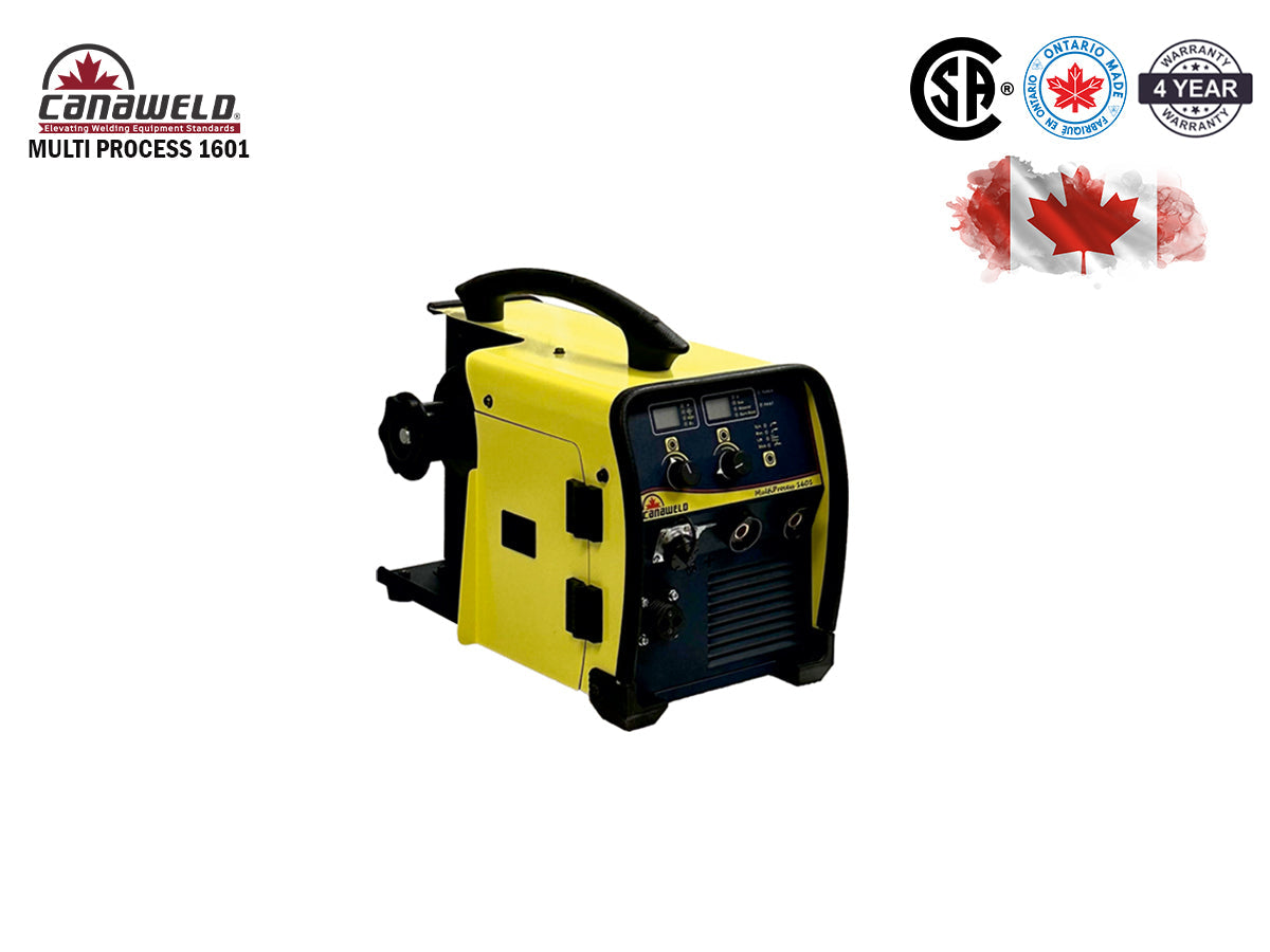 The Multiprocess 1601 is a very light and portable but unbelievably powerful and intelligent welding machine specially designed for the novice to a professional production welder who has speed and quality in mind. This unit is capable of MIG welding, Flux cored welding, stick welding and TIG welding with a lift start in manual or synergic mode.