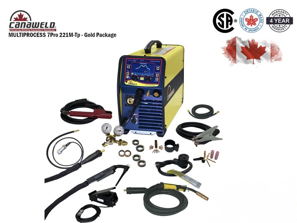 Canaweld has redefined what’s possible by introducing the Multiprocess 7 PRO 221 TP, a Canadian-made welding machine that sets a new industry standard. This all-in-one powerhouse supports seven welding processes, including MIG Manual/Synergic, MIG Brazing, Flux-Cored, TIG AC Pulse, TIG DC Pulse, TIG DC (No HF), and Stick. It is designed to weld all metals, including aluminum, stainless steel, and related alloys, with precision and efficiency.